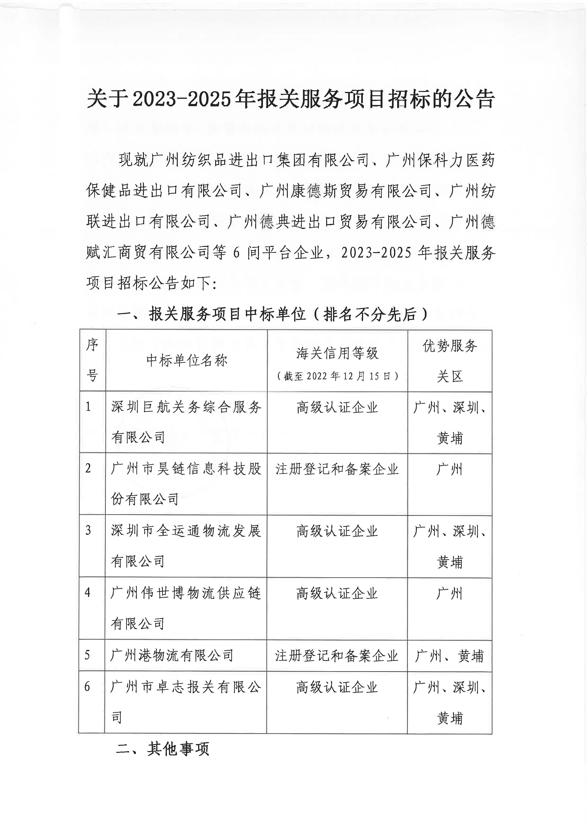 關于2023-2025年報關服務項目招標的公告